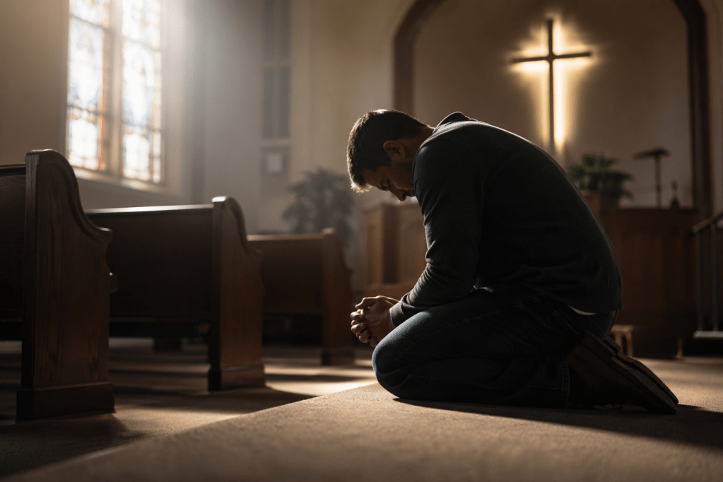 He does not pretend to be beyond sin. He does not hide behind his office. He does not confuse spiritual leadership with spiritual arrival.